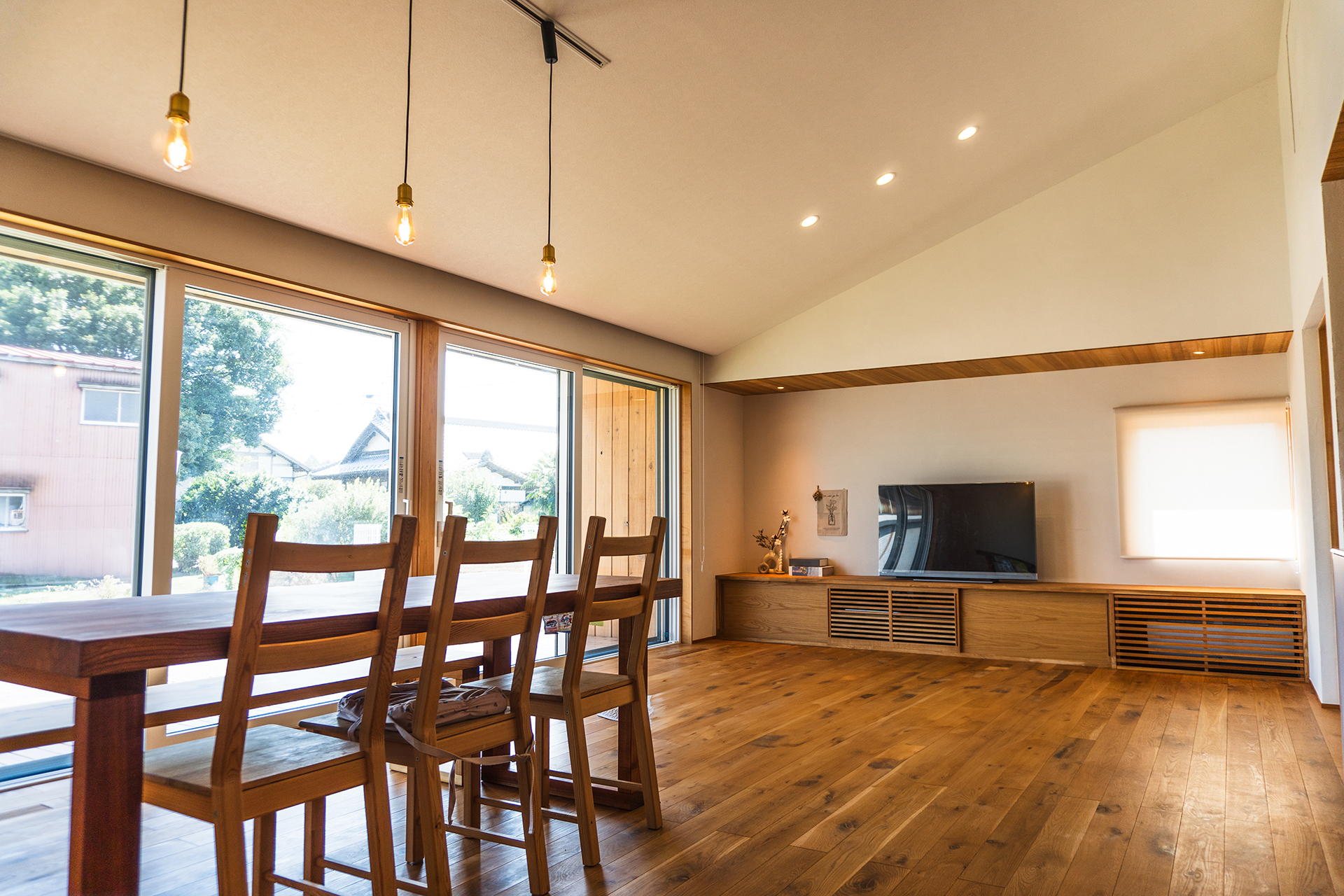 壁や天井にも無垢材をあらわしにして仕上げることで、生活でのぬくもりを感じられる仕上がりを意識しております。